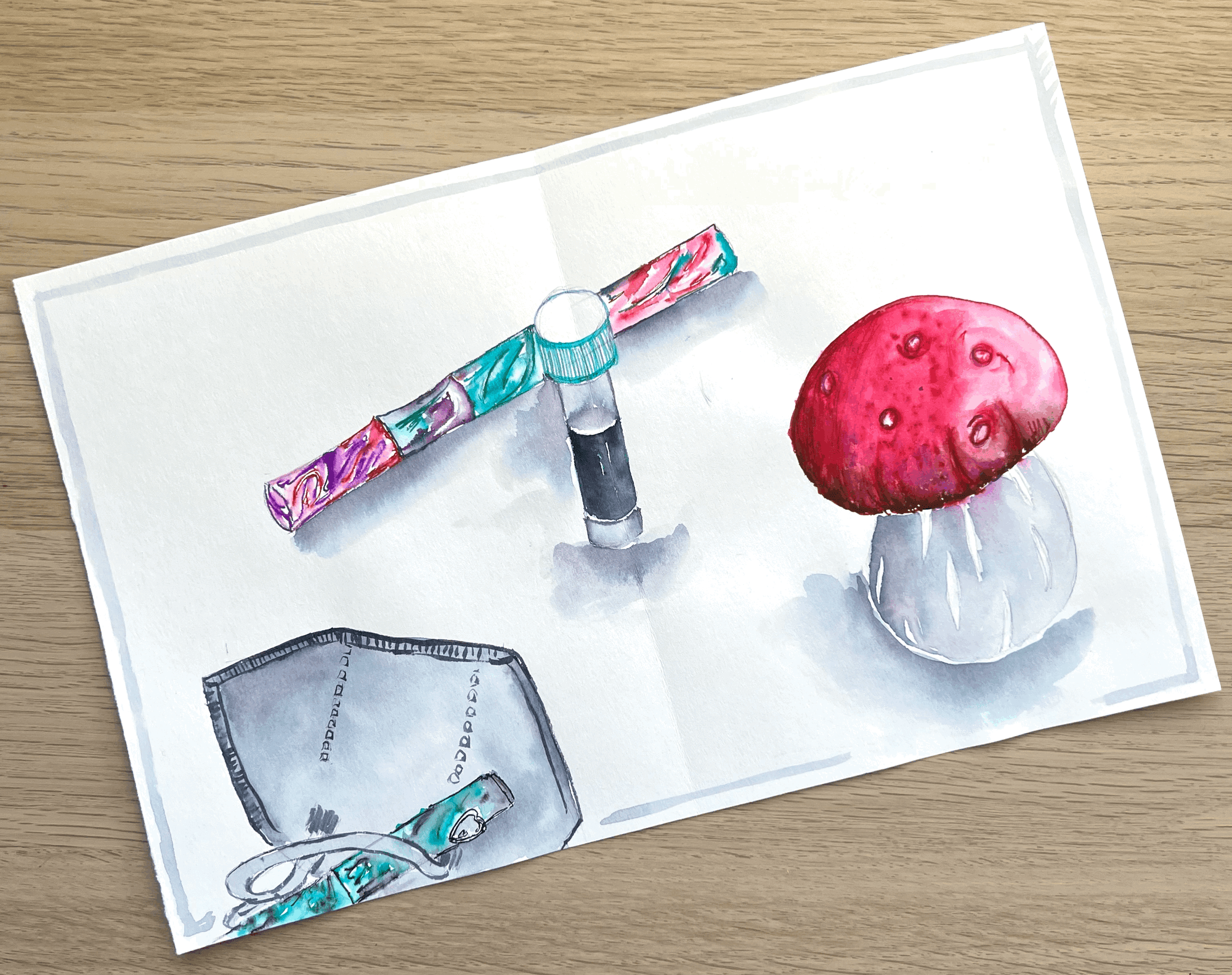 The morning session was 'Basic Pen & Ink Wash Art Workshop' and the PM session was 'Beyond the Basics' both by the lovely Susan Gable. This is my first ever in-person art workshop so I was pretty excited about it. Check out Susan's blog at https://susiegstudio.com. Susan gave the class a sample of Robert Oster Thunderstorm, which she was intrigued about. The ink has gorgeous purple and pink undertones and I loved how it works on ink sketches. It quickly became my favorite too.