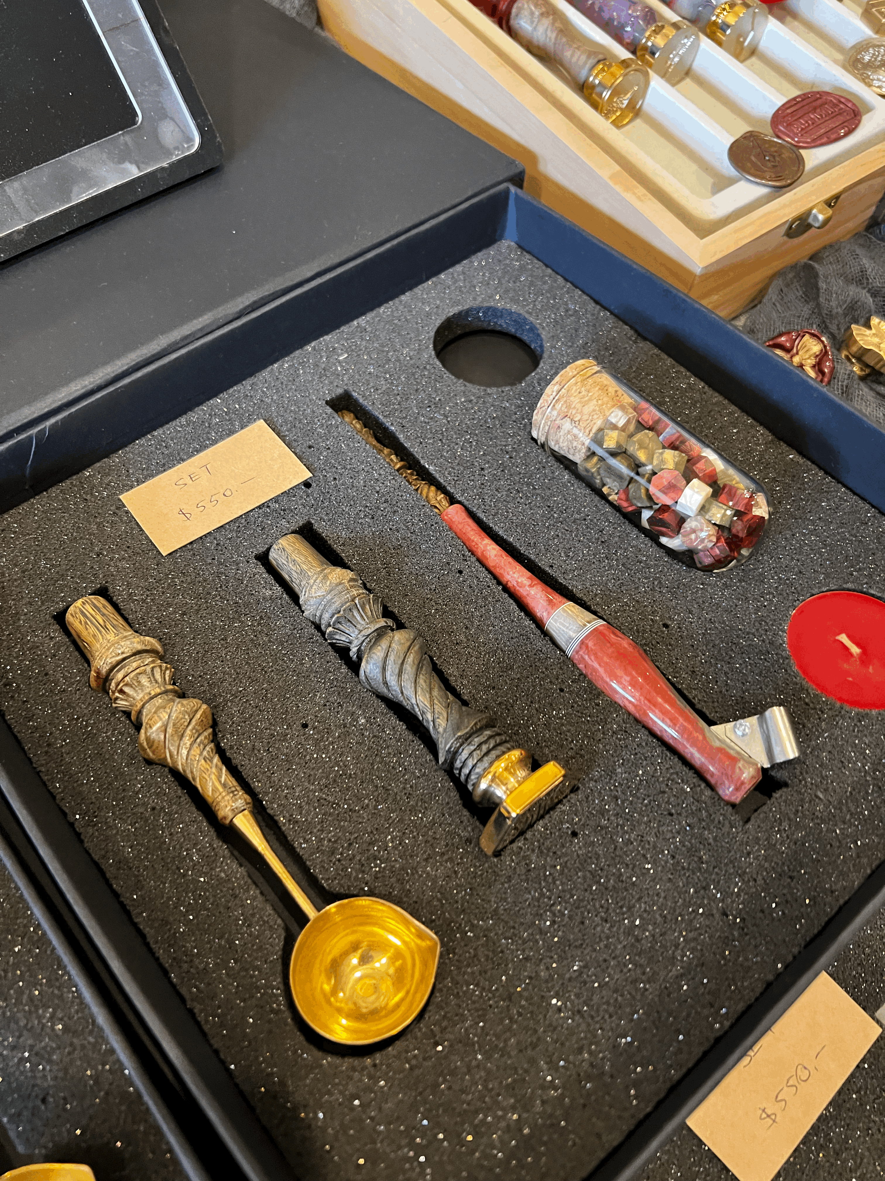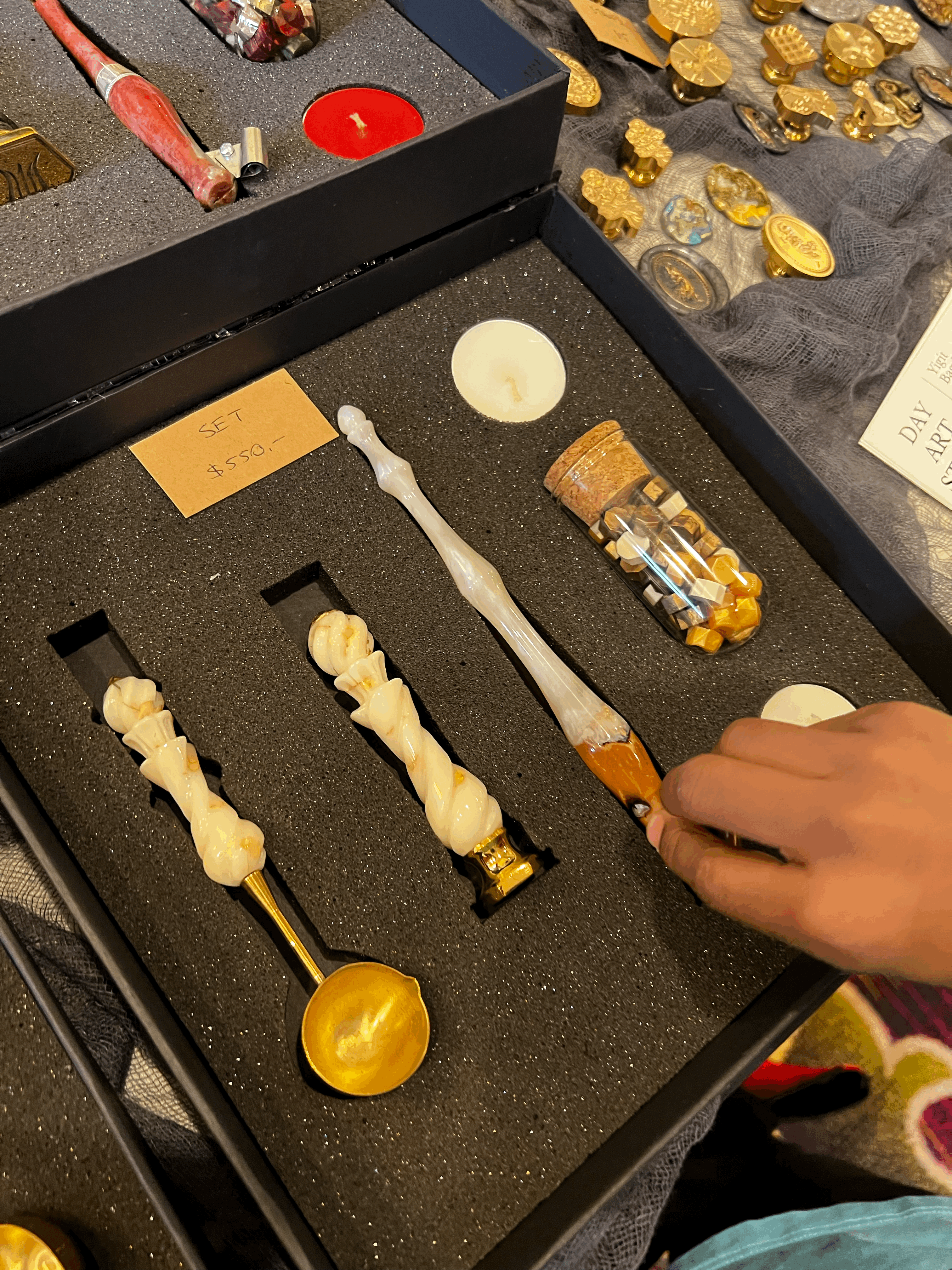 Some interesting finds from the day were wax stamping handmade supplies from Days Art Store (a small business located in USA with products from USA and Turkey). They had very interesting handles and nib holders. Some of my favorites are shown below.