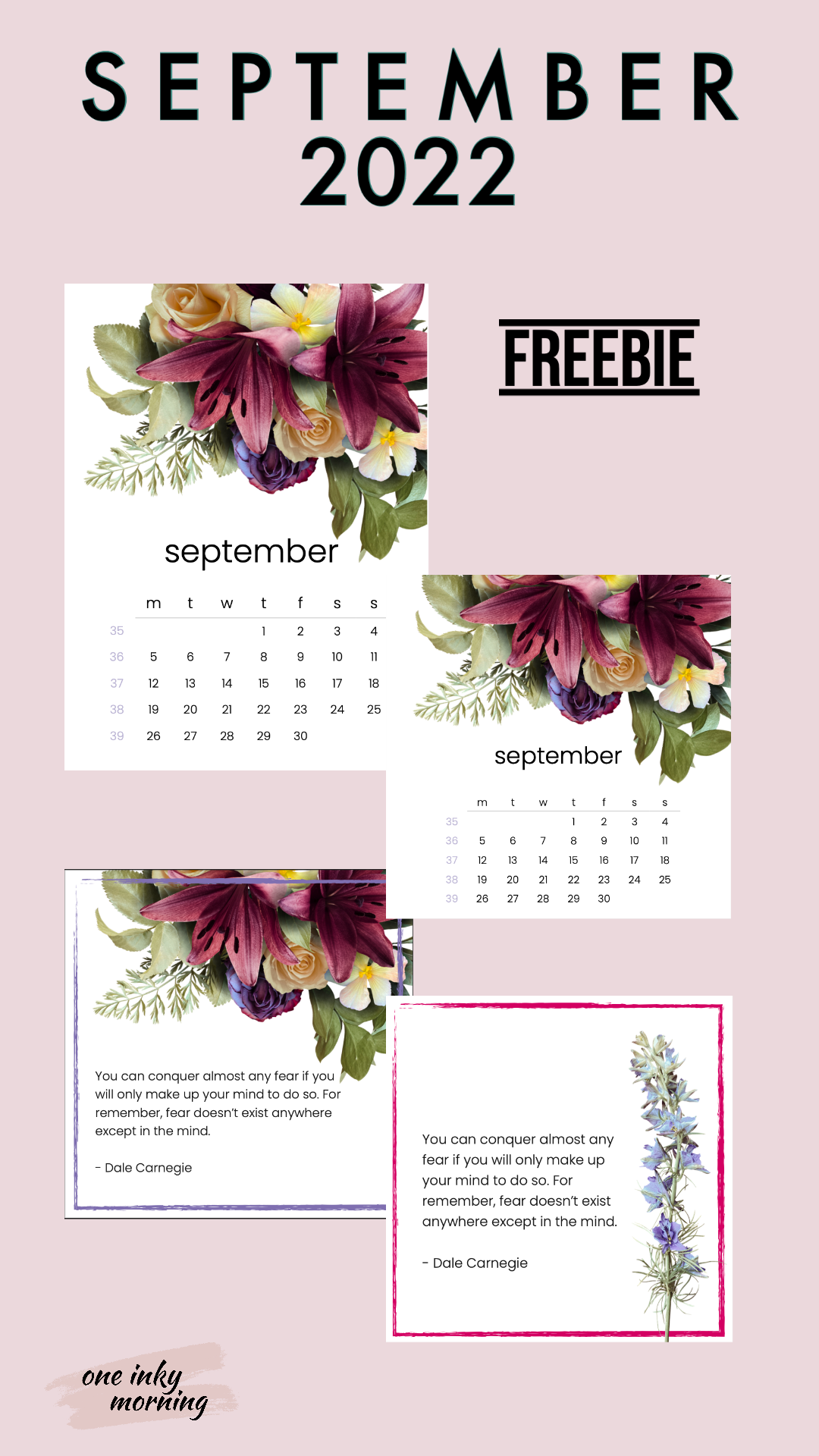 For September 2022, I chose a bouquet of flowers that lean toward Fall but don't cry out Fall yet. Well, I am not ready to be done with Summer yet. Please click on the image to download the calendar and quote card freebies.